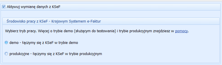 Należy zaznaczyć [v] Aktywuj Wymianę Danych z KSeF.